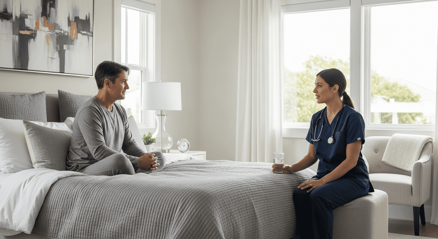 Your nurse reviews your home set-up, sleep environment, and access to light foods and fluids. We typically recommend limiting driving, work obligations, and visitors so your nervous system can stabilize with minimal strain. Daily notes are maintained to support consistent, precise care.